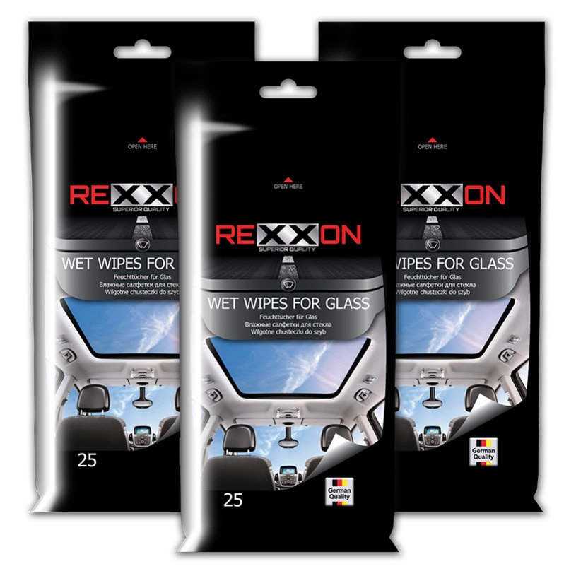 REXXON wipes are extremely effective in cleaning windows, mirrors and headlights. They quickly remove hard dirt, dust, insect marks and engine oil from glass surfaces. They leave no streaks and do not lose their properties in prolonged exposure to freezing temperatures. Recommendations for use. Storage recommendations. Do not store the wet wipes in direct sunlight or near sources of hectolinium. Package contains 25 wet wipes.