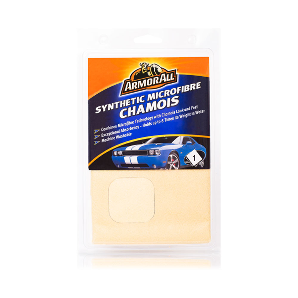 Armor All Synthetic Microfibre Chamois provides exceptional absorbency and leaves paintwork, chrome and glass streak-free. Exceptional absorbency – holds up to 8 times its weight in water. Easy care – machine washable and dryable. Suitable for automotive and household applications.