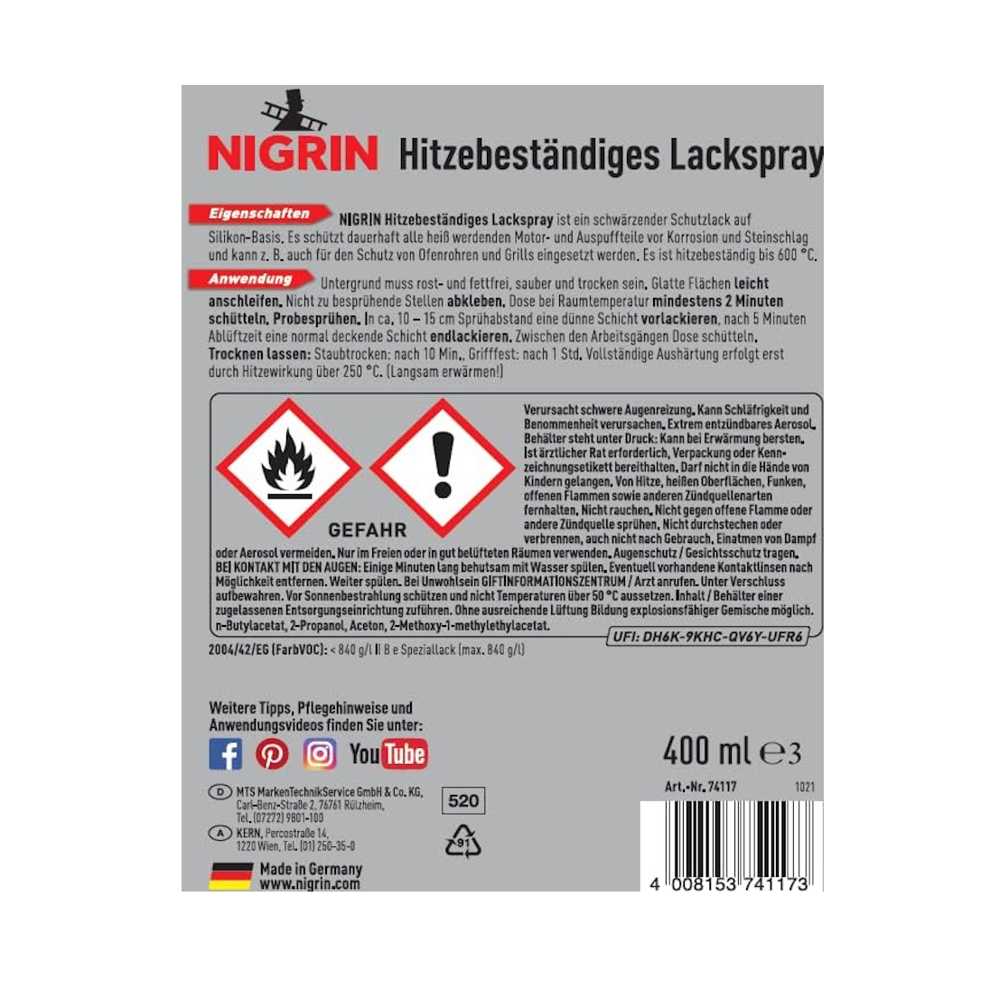 Clean the surface thoroughly of rust and paint residues. Mask off the areas not being treated. Shake the spray can vigorously for at least 2 minutes. Spray thin cross-coats from a distance of 25 cm. After every pause, shake again before continuing. Drying time: 10 minutes – dust-dry; 1 hour – touch-dry; 24 hours – can be polished.