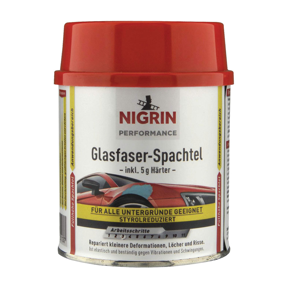 2️⃣ Mix NIGRIN fiberglass polyester filler with hardener in a 98% filler : 2% hardener ratio