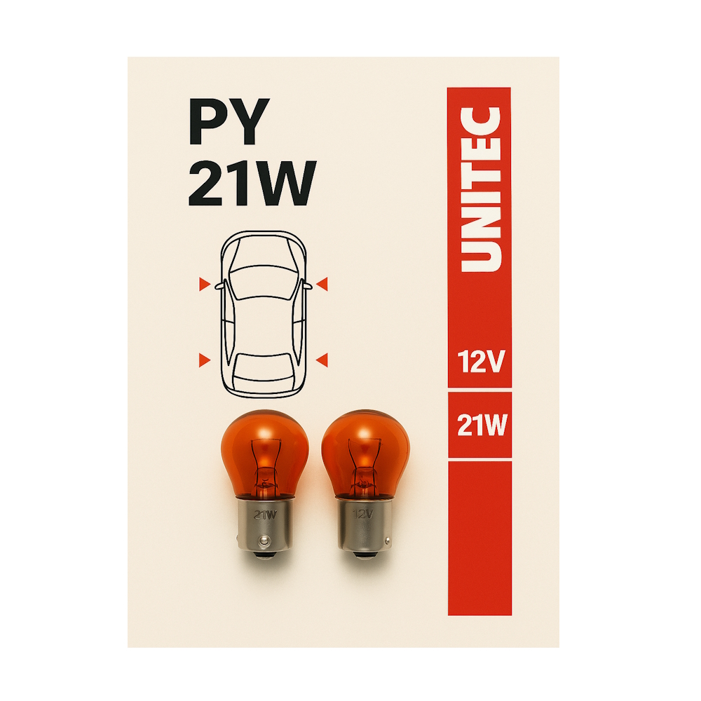 The UNITEC PY21W 12V 21W bulbs are a high-quality solution for automotive turn signals, designed to provide bright, visible, and safe signaling on the road. With their characteristic amber light, they ensure optimal visibility both day and night.