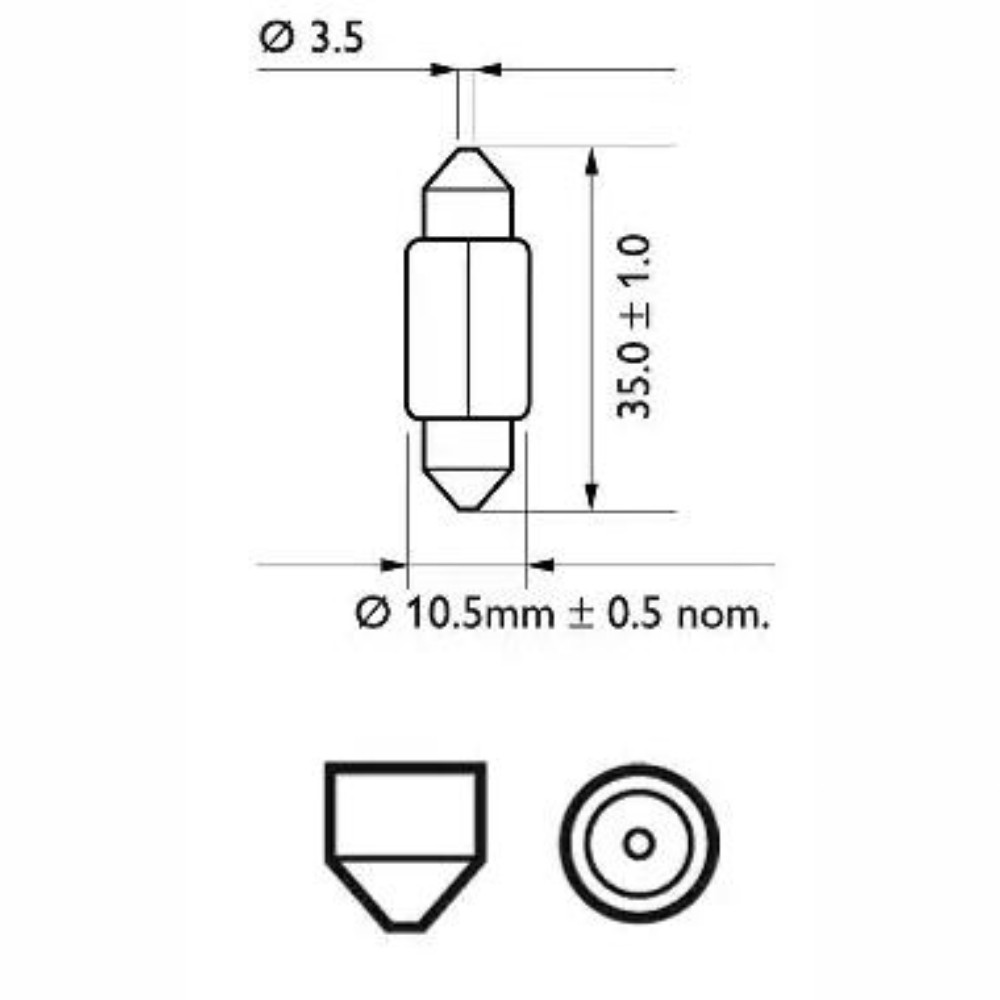 Philips C5W is a reliable halogen automotive bulb designed for interior lighting, trunk lighting, dashboard, license plate, or auxiliary lights. With a standard SV8.5 base and precise construction, it ensures stable light and easy installation.
