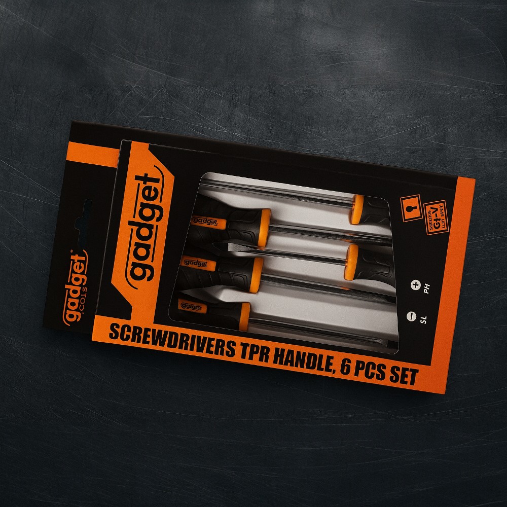 The Gadget GD 6-piece screwdriver set with two-component TPR handles is designed for reliable, comfortable, and precise work. Suitable for professional use in workshops and service centers, as well as for home repairs. Each screwdriver is made of high-quality Cr-V steel, ensuring strength, durability, and long service life.