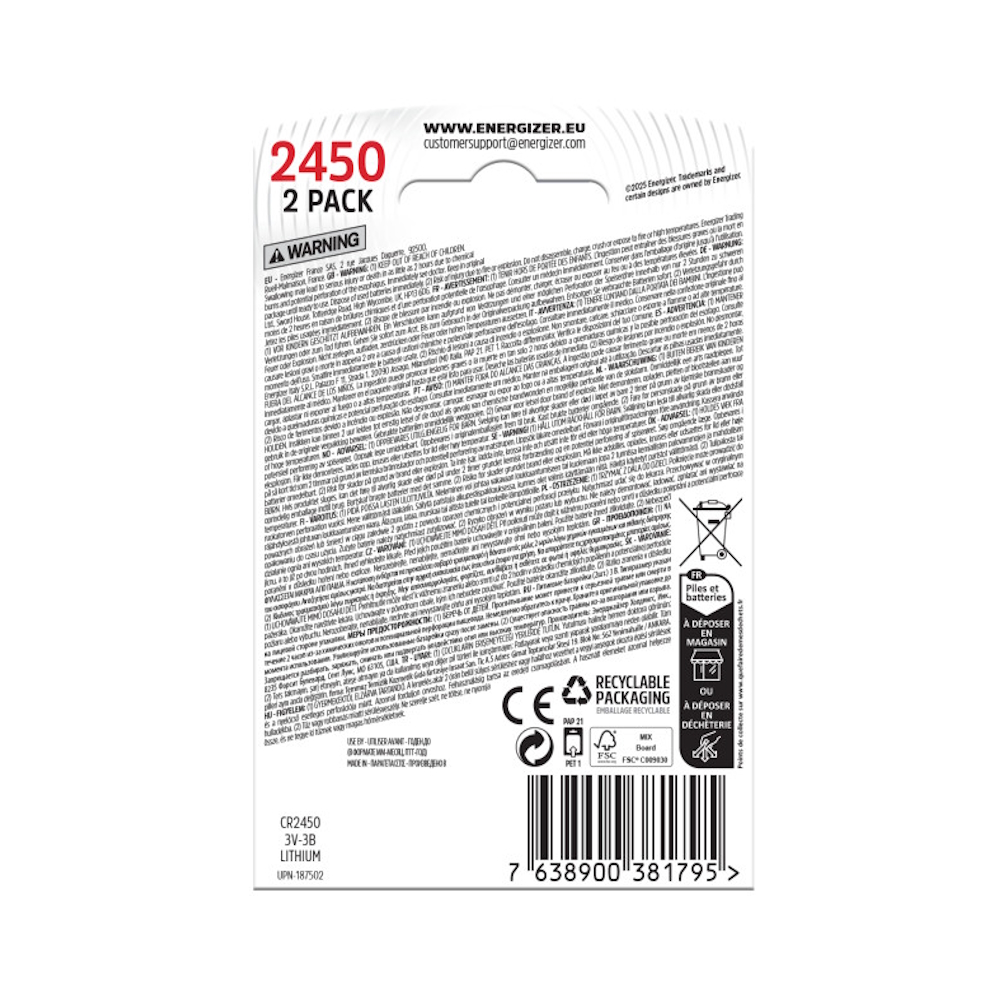 💬 Energizer CR2450 – a lithium battery with high energy density and unmatched reliability.