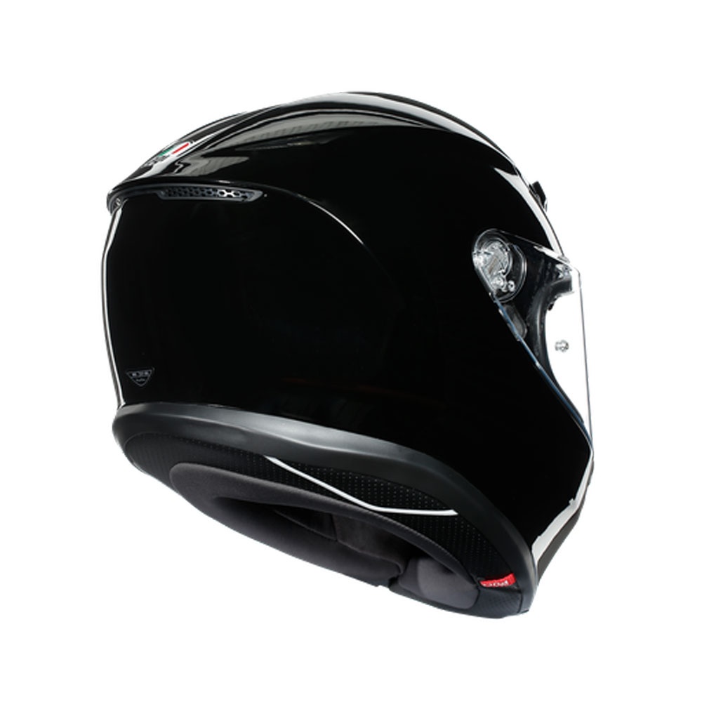 K-6 the best road helmet for any use, made from technologies developed for MotoGP™. Versatility defines the K6. Suitable for every type of riding and all riding surfaces, it incorporates the best characteristics from the sport and touring worlds and is ideal for taking on any two-wheeled challenge, from leaning into the turns on winding roads to long-range trips, by way of everyday city rides. Its carbon and aramid fiber shell ensures the very best protective performance in its category and makes it the lightest full-face road helmet in the world. The aerodynamic shapes developed in the wind tunnel are optimized for ideal air penetration in any riding position, making this solution perfect for riders who want the freedom to select their own riding styles, without compromise. The premium interiors are waterproof and ventilated. They are designed so riders can cover infinite miles in total comfort with only the road ahead to focus on. The innovative air vents on the forehead and chinguard are designed for easy adjustment even when wearing gloves, which means the rider always has the right amount of ventilation. ACCESSORIES INCLUDED: Wind protector; AERODYNAMICS: Optimized for all riding positions; Shell shape designed to reduce turbulence; INTERIORS: 2Dry: instant sweat absorption; Cheek pads safety release system; Cheek pads: Ritmo fabric to facilitate putting on/taking off the helmet, with cheekbone area in Shalimar fabric to ensure stability at high speed; Crown pad: Shalimar fabric for a soft and gentle touch; Embracing neck roll profile; Fit especially designed to allow wearing glasses; Microsense: premium skin comfort; Neck roll: Ritmo fabric and synthetic leather with high abrasion resistance and water-resistant treatment; Ready for AGV ARK communication system; Reflective inserts; Removable and washable interiors; Removable nose guard; Sanitized: antibacterial protection; RETENTION SYSTEM: Double D; SHELL: 4 shell sizes; 5-density EPS developed in 4 sizes; Carbon-Aramid fiber; Collarbone safe profile; VENTILATION: 1 wide rear extractor; 5 front vents; Adjustable air vents; VISOR: 100% Max Vision Pinlock (120) included; 190° horizontal field of view; 4mm thickness; 85° vertical field of view; Anti-scratch; Metal visor mechanism; Micro-opening system; Multistep visor mechanism; Optic class 1; Patented Extra Quick Release System; Patented visor lock system; WEIGHT: 1.220g in first shell size