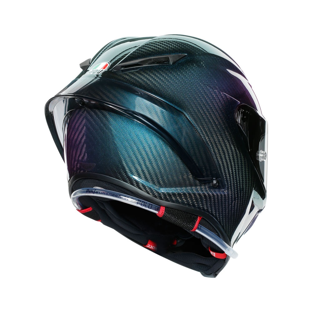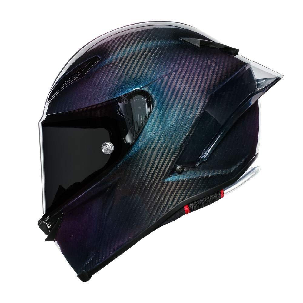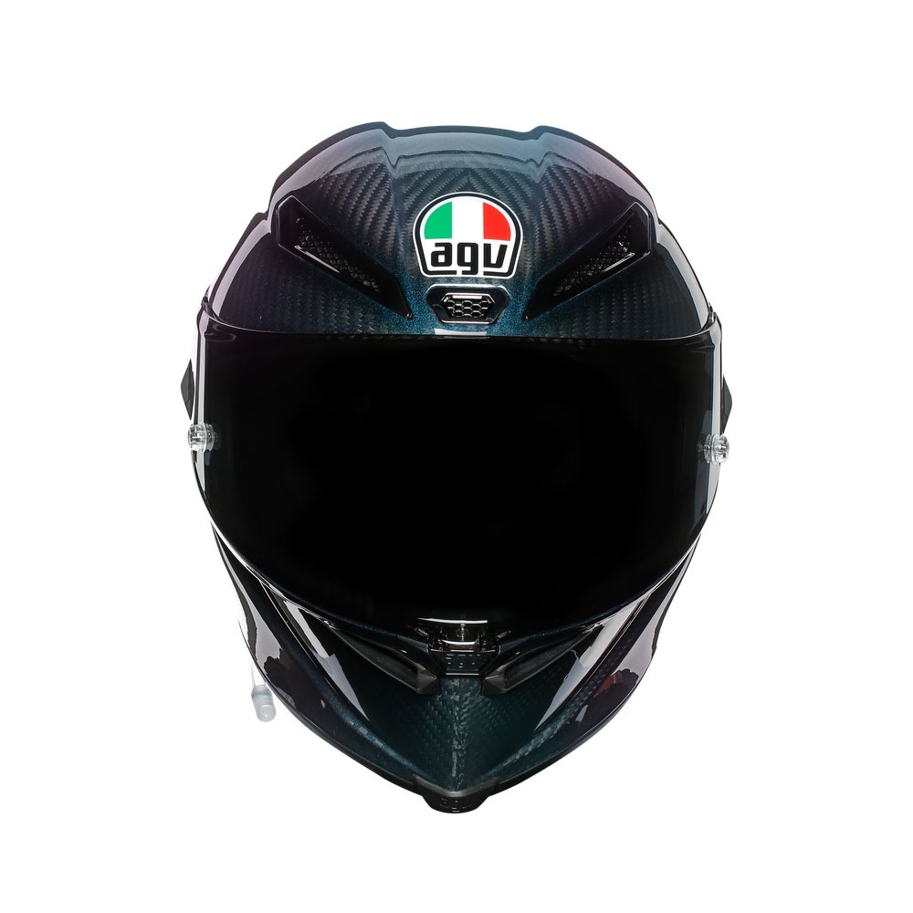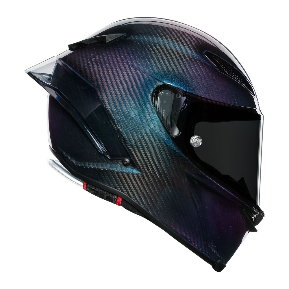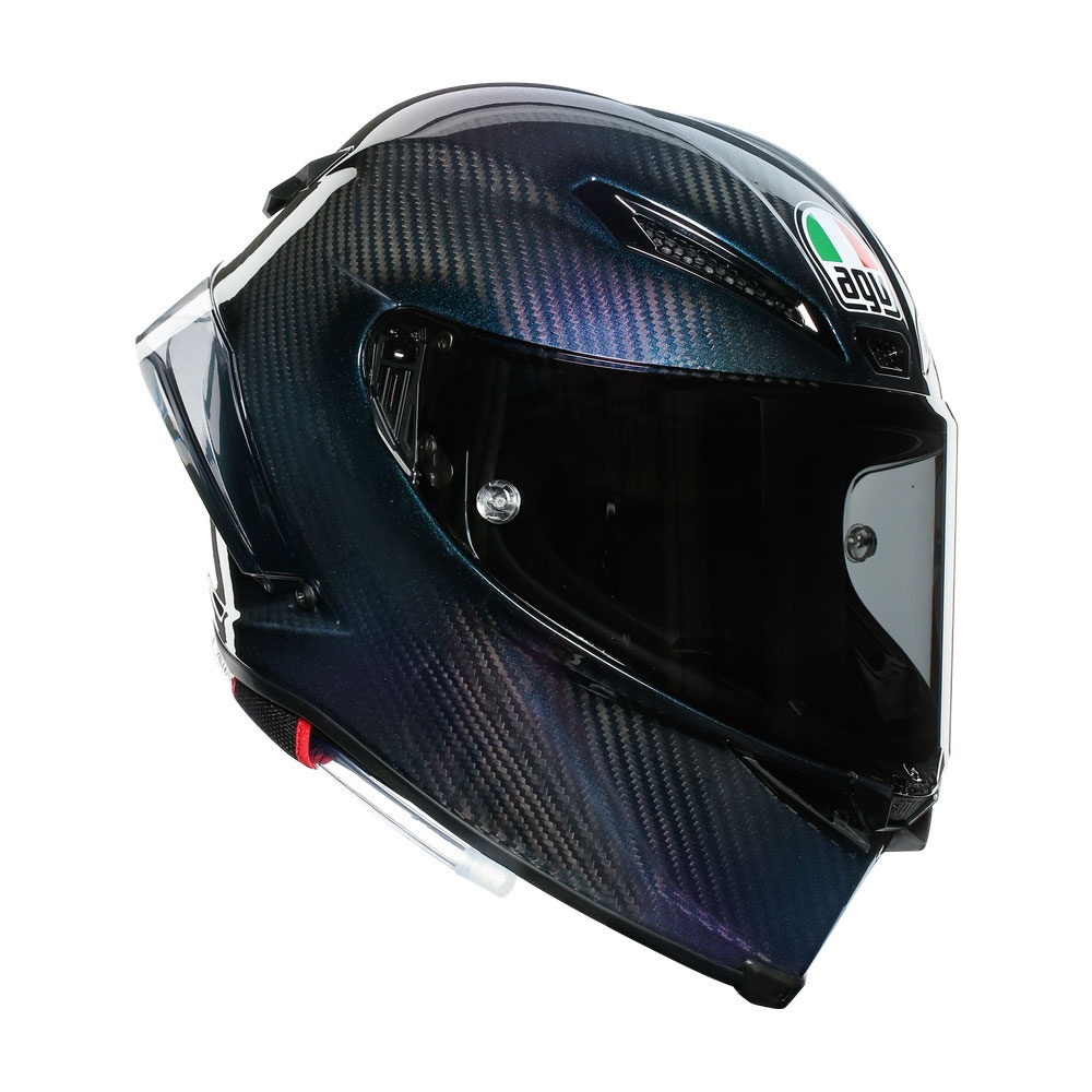 Pista GP RR is an exact replica of the AGV helmet used in races by professional world championship riders. It has therefore received FIM homologation, which certifies the highest possible level of protection, even against any dangerous twisting of the head. Every detail is designed to ensure ultimate performance. The Extreme Carbon shell in 100% carbon fiber guarantees extraordinary lightness, which make it effortless to wear. Its shapes and metal air vents are studied in the wind tunnel and tested by AGV athletes in order to ensure the best aerodynamic penetration and the greatest stability at high speeds, also as a result of the innovative profile of the rear PRO Spoiler. Boasting up to 5mm thickness, the optical class 1 Ultravision visor is an integral part of protection that enables 190° panoramic vision. This means the rider sees the track, adversaries, and obstacles more clearly, before anyone else. The exclusive 360° Adaptive Fit system allows for complete customization of the interior, giving the rider the possibility to select the ideal thickness for the upper part of the head, nape, and cheeks. Essential comfort that allows the rider to concentrate on the goal without distractions. Every detail is designed with winning in mind. This is the perfection of obsession. ACCESSORIES INCLUDED: Earplugs; Hydration system; Interiors customization kit: top crown pad, rear crown pad, cheek pads; Tear-off kit; Vents covers; AERODYNAMICS: Detachable PRO Spoiler; Race suit fitment; INTERIORS: 2Dry: instant sweat absorption; 3-piece adaptable crown pad fit; 360° Adaptive fit; Cheek pads safety release system; Cheek pads: Shalimar fabric for soft and stable fit even at high speed; Crown pad: elastic and breathable microfiber; Embracing neck roll profile; Microsense: premium skin comfort; Neck roll: breathable fabric with elastic and waterproof inserts; No stitches in sensitive areas; Removable and washable interiors; Removable nose guard; Removable wind protector; Sanitized: antibacterial protection; RETENTION SYSTEM: Titanium Double D SHELL: 100% Carbon fiber; 4 shell sizes; 5-density EPS developed in 4 sizes; Collarbone safe profile; Shell and EPS structure designed to minimize rotational accelerations (FIM homologated); VENTILATION: 2 rear extractors; 5 front vents; Metal air vents and extractors; VISOR: 100% Max Vision Pinlock (120) included; 190° horizontal field of view; 5mm thickness; 85° vertical field of view; Anti-scratch; Metal visor mechanism; Micro-opening system; Optic class 1; Patented Extra Quick Release System; Patented visor lock system; WEIGHT: 1.450g in first shell size;