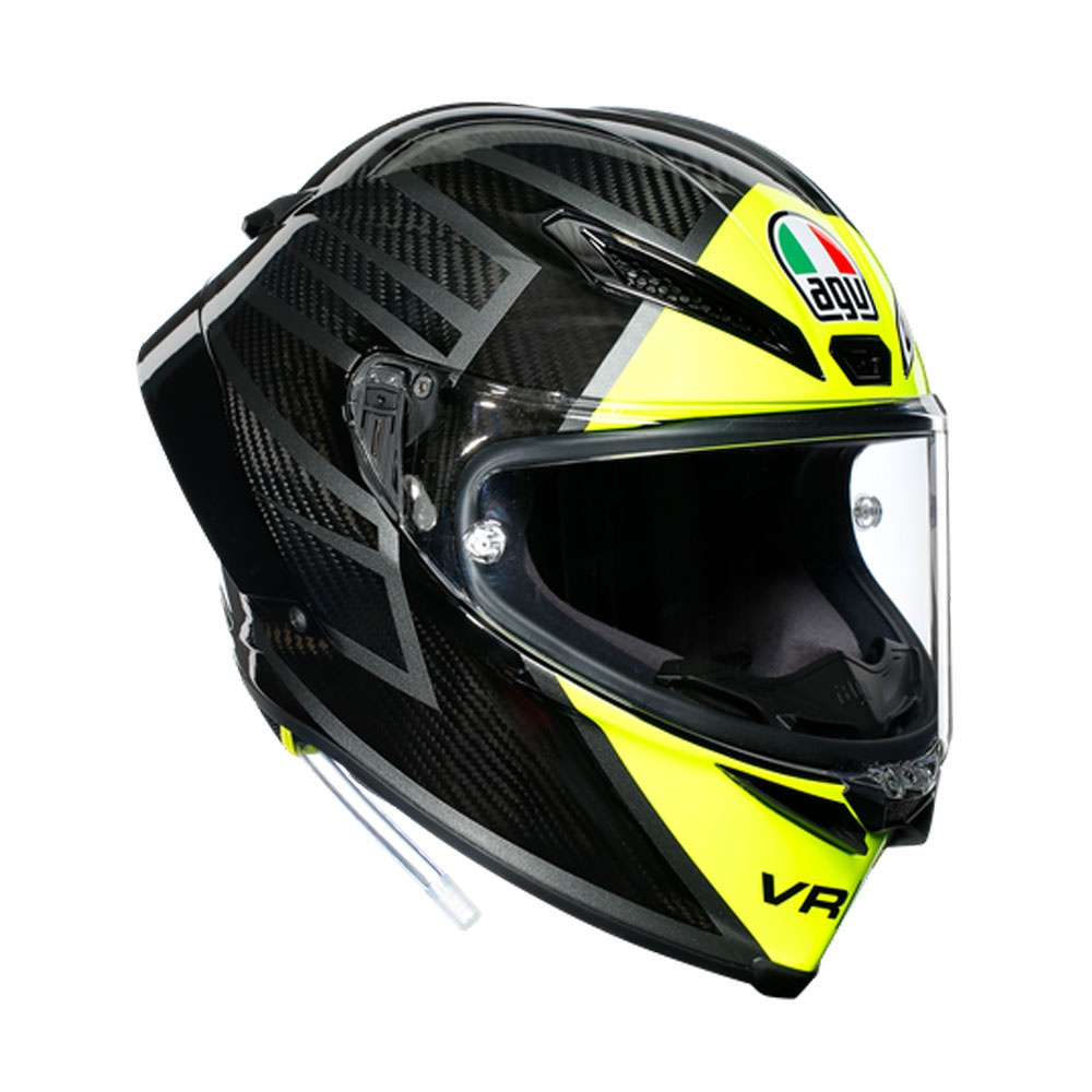 The 100% carbon-fiber racing helmet used by MotoGP™ riders. “Essenza 46” graphic.