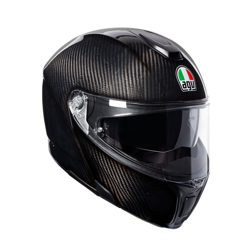Entirely built in Carbon Fiber (shell and chin), this specific structure achieves the same protection performance of MotoGP’s Pista GP R in an incredibly light weight construction, combing the highest levels of comfort and safety. Designed to offer 190° horizontal view as the human eye capability, SportModular has been conceived in the wind tunnel for superior quietness, aero stability and ventilation. ACCESSORIES INCLUDED: Winter wind protector. AERODYNAMICS: Adjustable rear spoiler. Shell shape designed to maximize aerodynamic performance and to have 0 dynamic weight at 130km/h (80 mph). HOMOLOGATION: ECE 2205 INTERIORS: Cheek pads: fresh and fluid Ritmo fabric. Crown pad: Shalimar fabric (warmer side) for a soft and gentle touch and Ritmo fabric (cooler side) for a fresh and fluid fit. Fit especially designed to allow wearing glasses. Neck roll: Shalimar and Nabuk fabric with water resistant treatment. Patented double face crown pad. Ready for generic communication system. Removable and washable interiors. Removable nose guard. Removable wind protector. RETENTION SYSTEM: Titanium Double D. SHELL: 100% Carbon fiber. 100% Carbon fiber chinguard. 3 shell sizes. 5-density EPS developed in 4 sizes. Chin guard opening system designed to prevent accidental opening. Collarbone safe profile. SIZE RANGE: 8 sizes (XXS-XXXL). VENTILATION: 1 rear extractor. 2 front vents. Adjustable air vents. Adjustable rear extractors. VISOR: 100% Max Vision Pinlock (120) included. 190° horizontal field of view. 85° vertical field of view. Anti-scratch. Integrated anti-scratch sun visor, removable without using tools. Metal visor mechanism. Micro-opening system. Multistep visor mechanism. Optic class 1. Patented Extra Quick Release System. Patented visor lock system. WEIGHT: 1.295 g in first shell size.