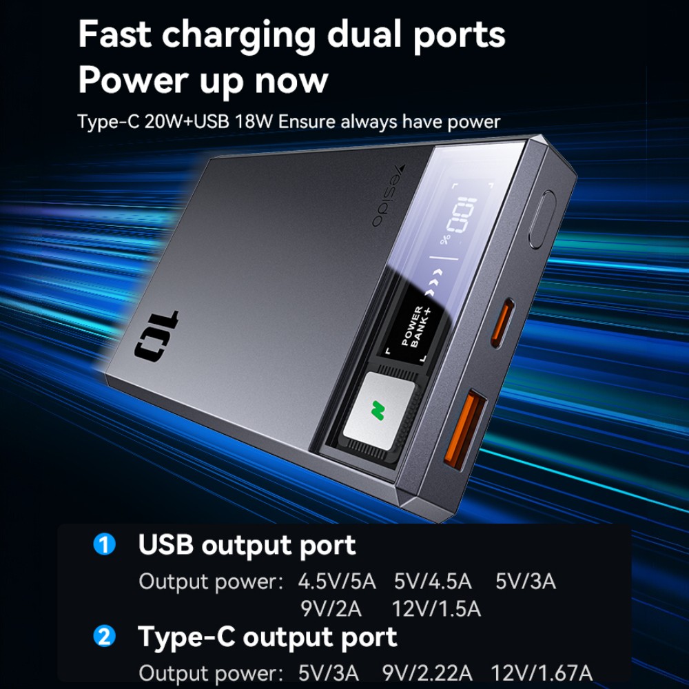✅ YESIDO 10000mAh – стил, мощност и свобода без кабели!