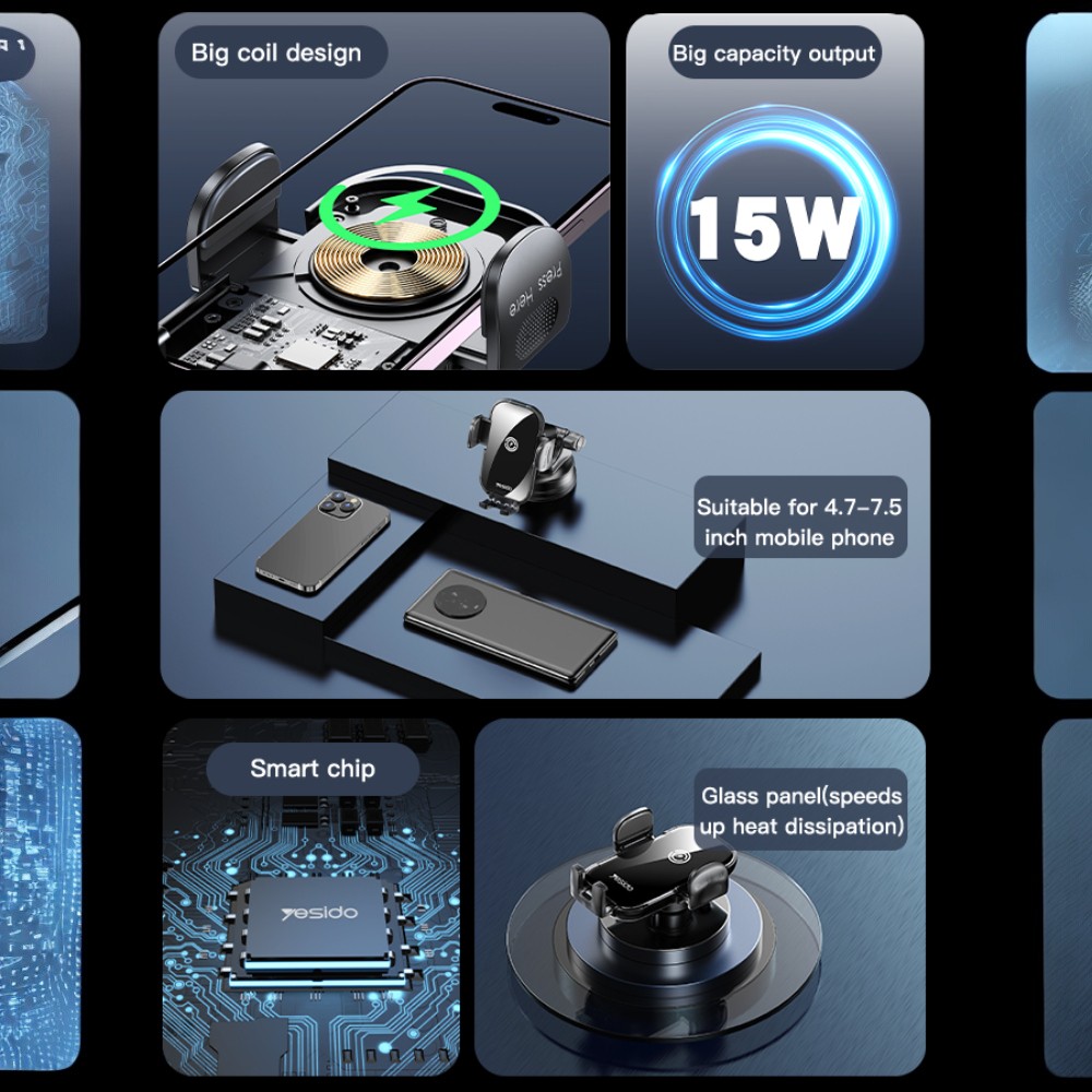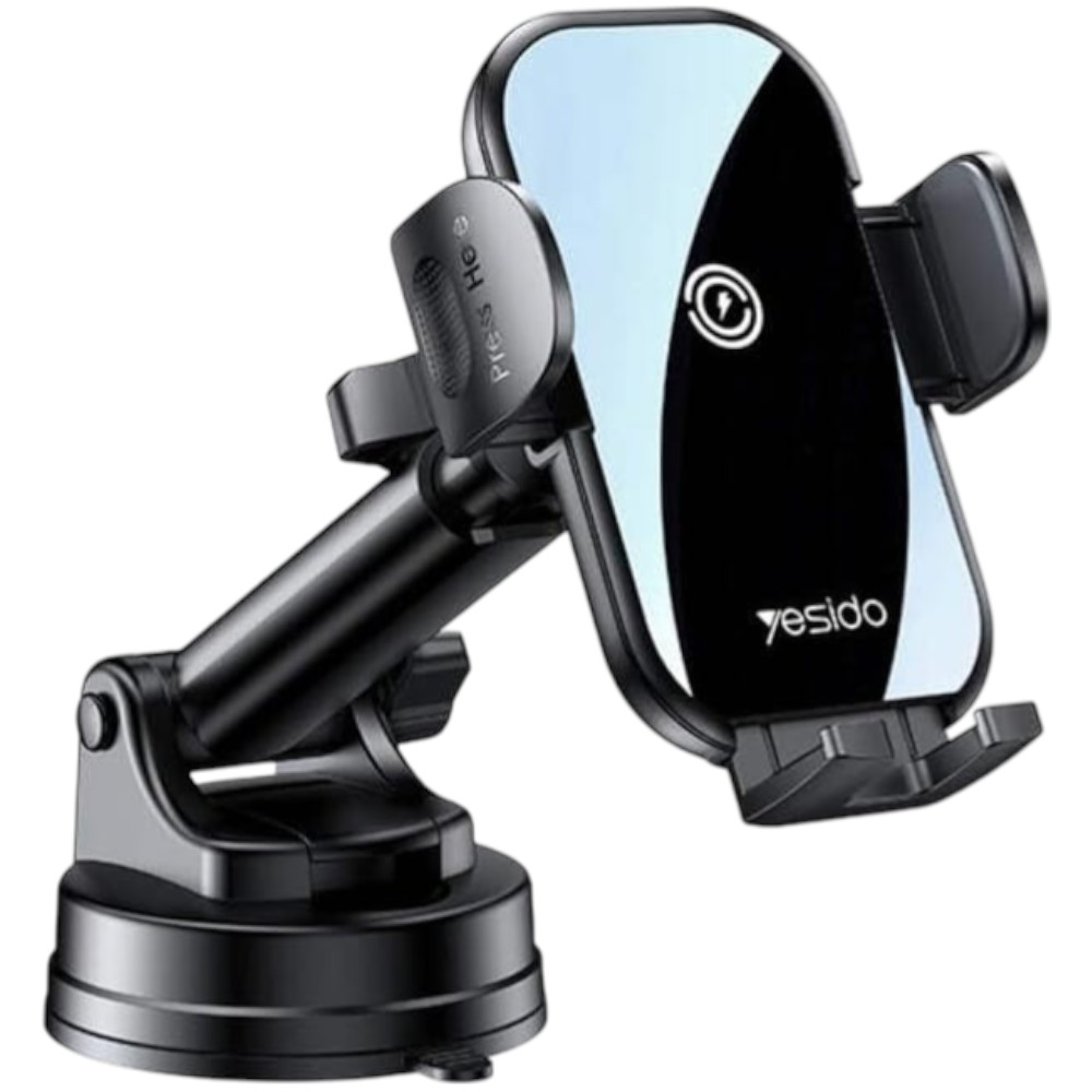 Безжично зарядно за кола YESIDO, с поставка за телефон 15W