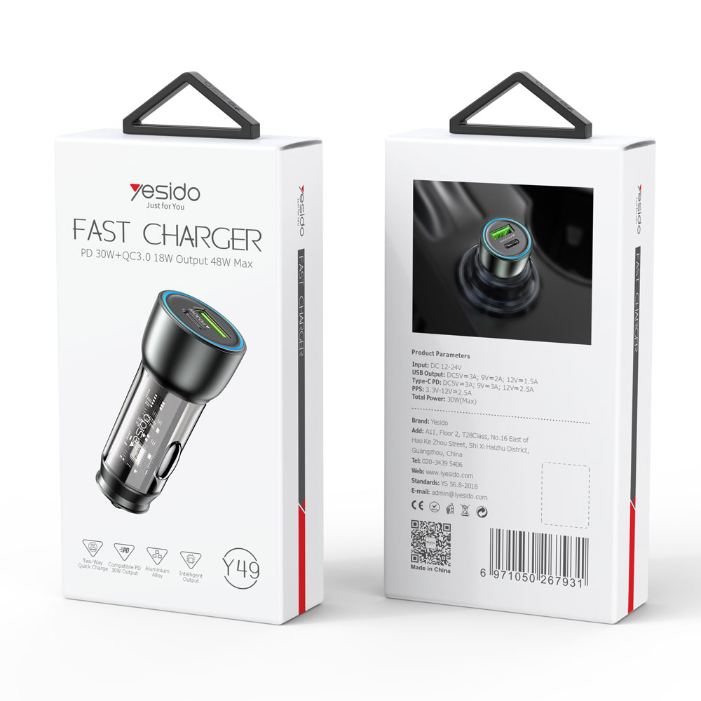 ✅ YESIDO 30W – стилно, компактно и сигурно решение за бързо зареждане в движение!