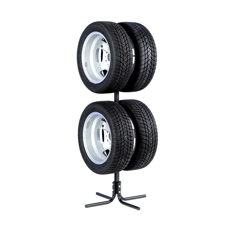 Стойка за 4 броя автомобилни гуми. Може да се ползва само за гуми и за гуми с джанти. Подходяща за размери гуми от 13″ до 17″ (33-43 см).