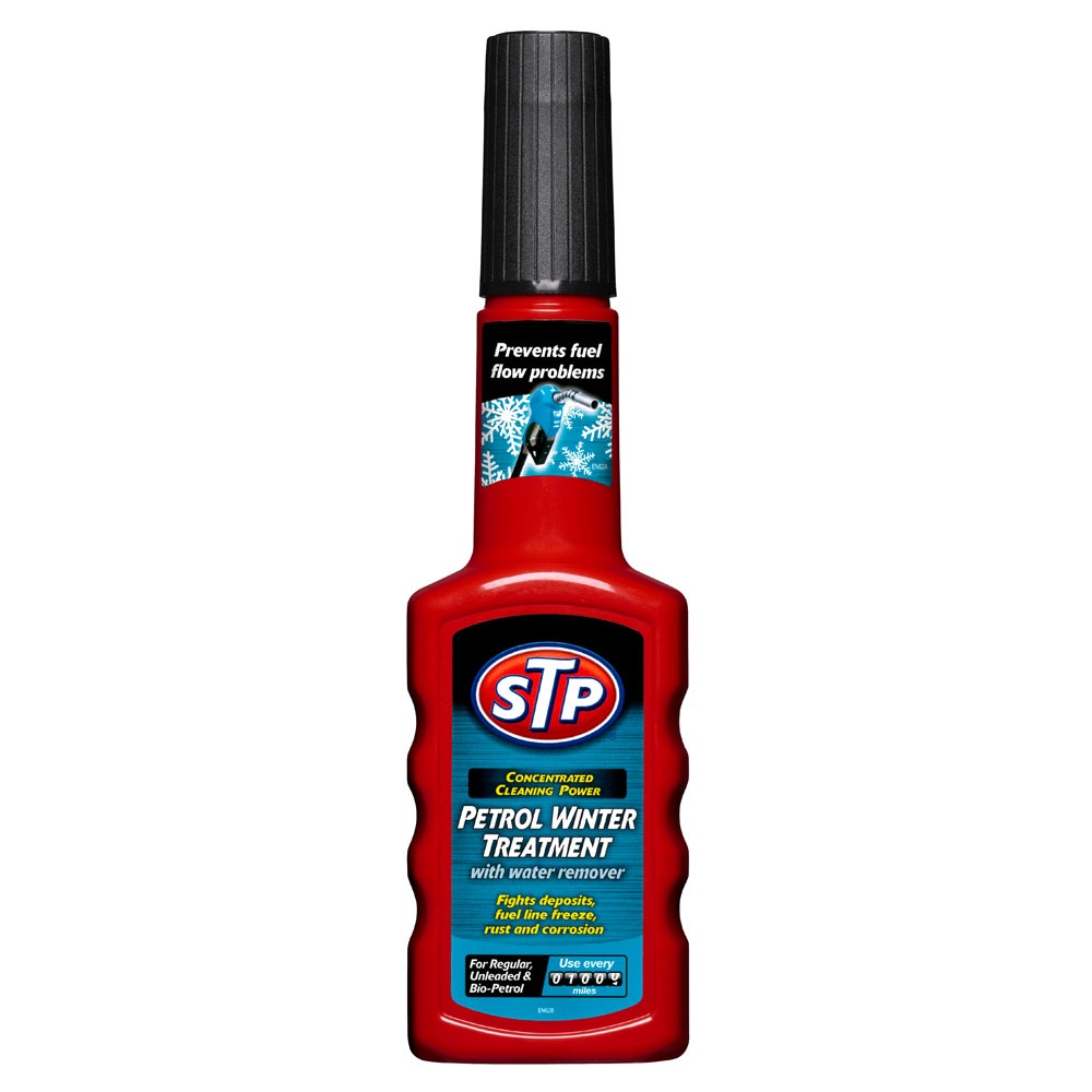 НАМАЛЯВА РАЗХОДА НА ГОРИВО НАМАЛЯВА ОТДЕЛЯНЕТО НА ВРЕДНИ ЕМИСИИ ПРЕДОТВРАТЯВА НАСЛАГВАНЕ НА ОТЛАГАНИЯ ПРЕДПАЗВА ГОРИВНАТА СИСТЕМА ОТ ЗАМРЪЗВАНЕ ПРЕДОТВРАТЯВА КОРОЗИЯ STP® Petrol Winter Treatment със агент за отстраняване на вода е предназначен да предотврати замръзване на горивопровода през по-студените месеци. STP® Petrol Winter Treatment помага при студен старт. Упътвания: Просто добавете към резервоара на всеки 1600 км. STP® Petrol Winter Treatment е подходящ за всички класически/модерни двигатели и каталитични конвертори. Да вземат под внимание! – STP® Petrol Winter Treatment се бори с корозията и отлаганията.