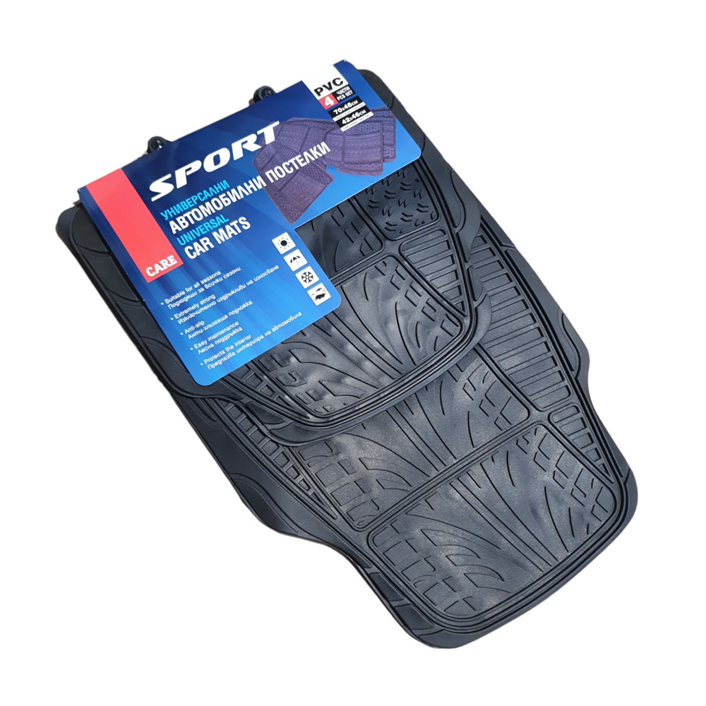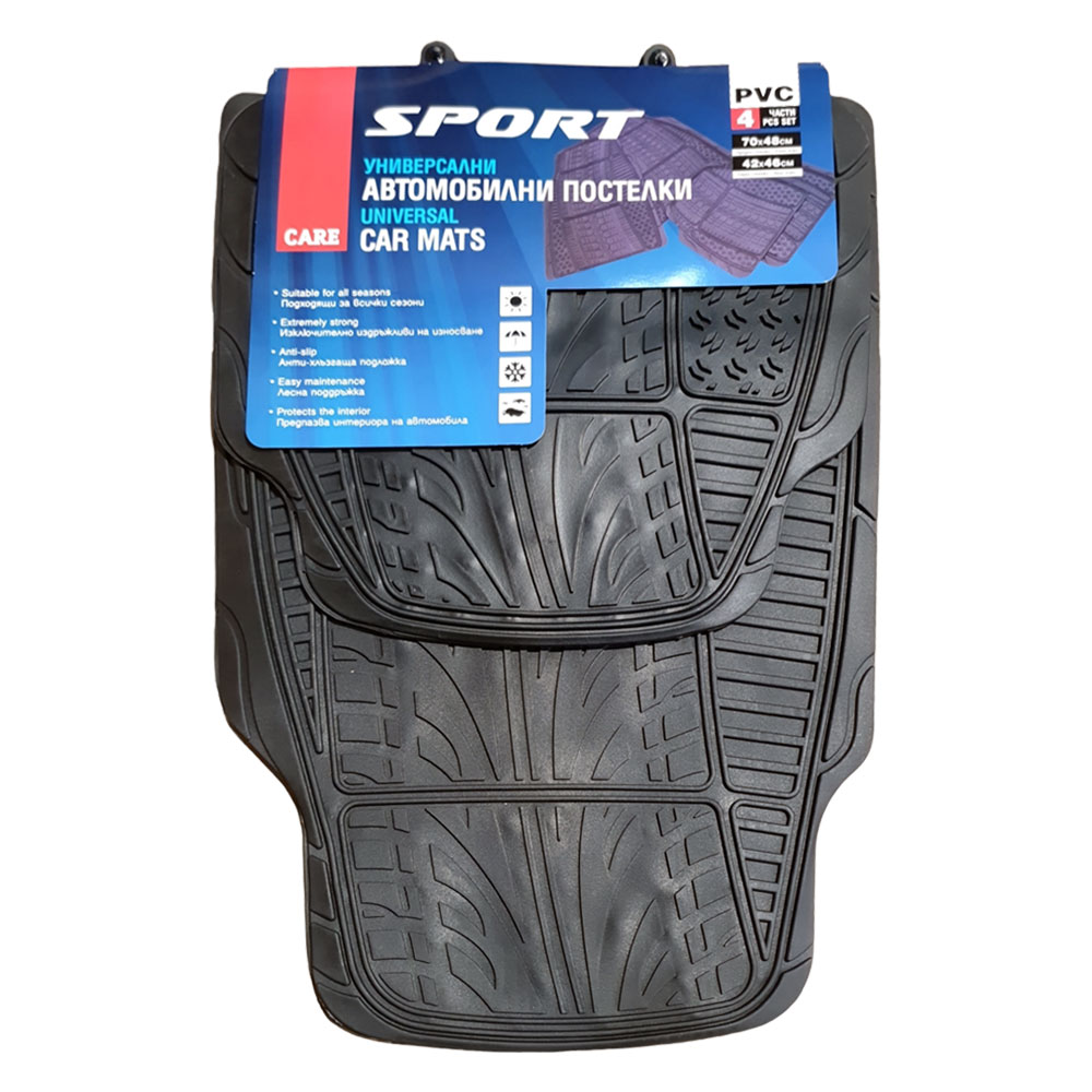 Комплектът универсални стелки „Sport“ е създаден да предпази интериора на автомобила ти от замърсяване, влага и износване. Изработени от висококачествен PVC материал, стелките са устойчиви, лесни за почистване и придават спортна визия на купето.