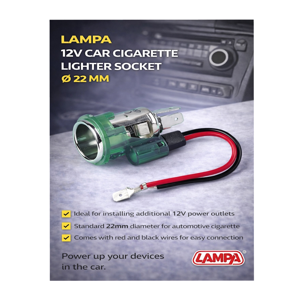 Гнездото LAMPA е предназначено за свързване и захранване на различни 12V аксесоари – зарядни устройства, GPS навигации, компресори и други автоелектронни уреди. Изработено от устойчиви материали, то гарантира надеждна и безопасна работа.