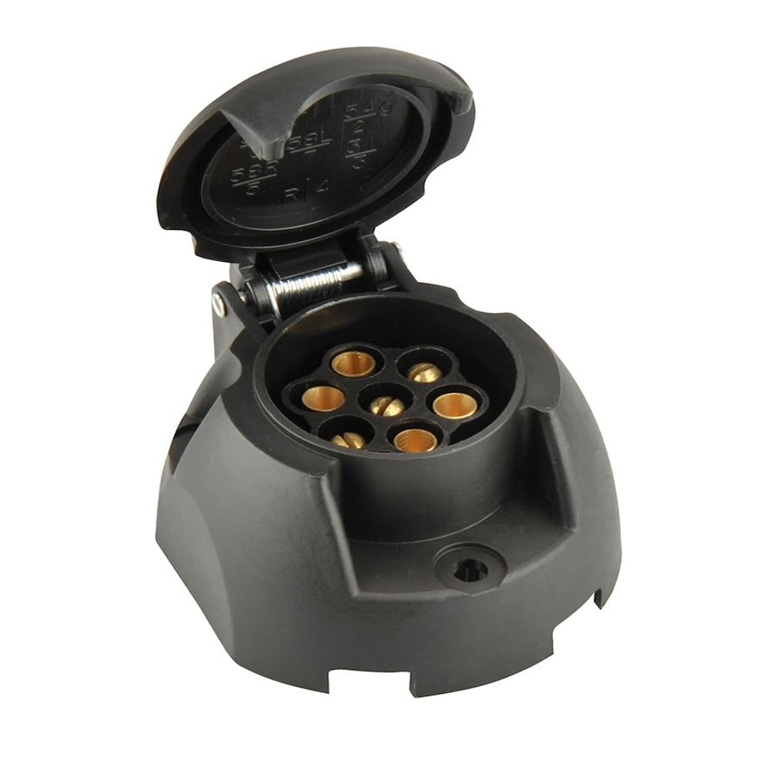 Това здраво и надеждно гнездо с 7 пина е предназначено за осигуряване на стабилна електрическа връзка между автомобила и тегленото оборудване. Позволява предаване на сигнали за светлини, мигачи и стопове, осигурявайки по-безопасно движение и по-добра видимост на пътя.