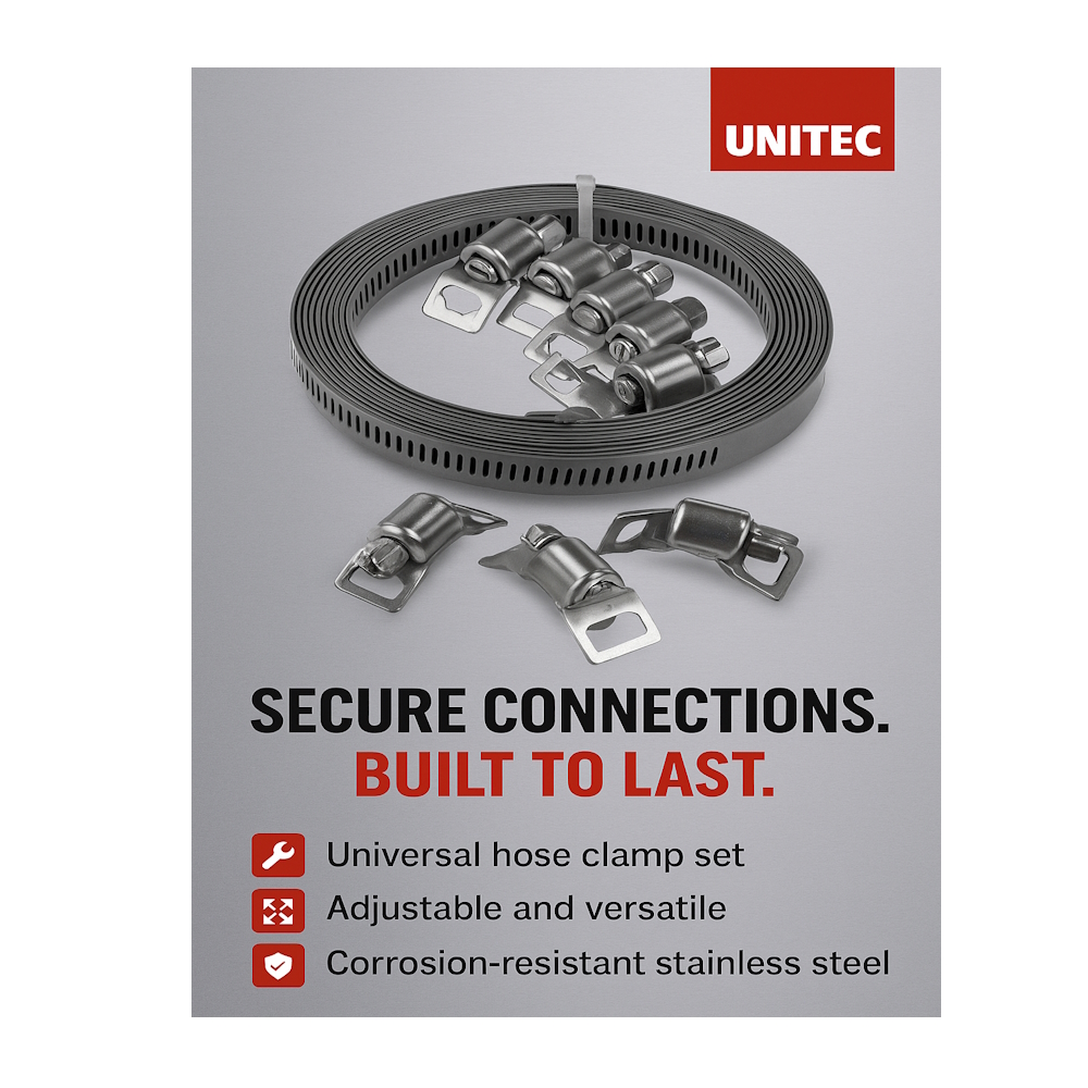 Комплектът скоби за маркучи е практично решение за здраво и надеждно стягане на маркучи с различен диаметър. Подходящи са за използване при ремонти, поддръжка на автомобилни системи, ВиК инсталации и други.