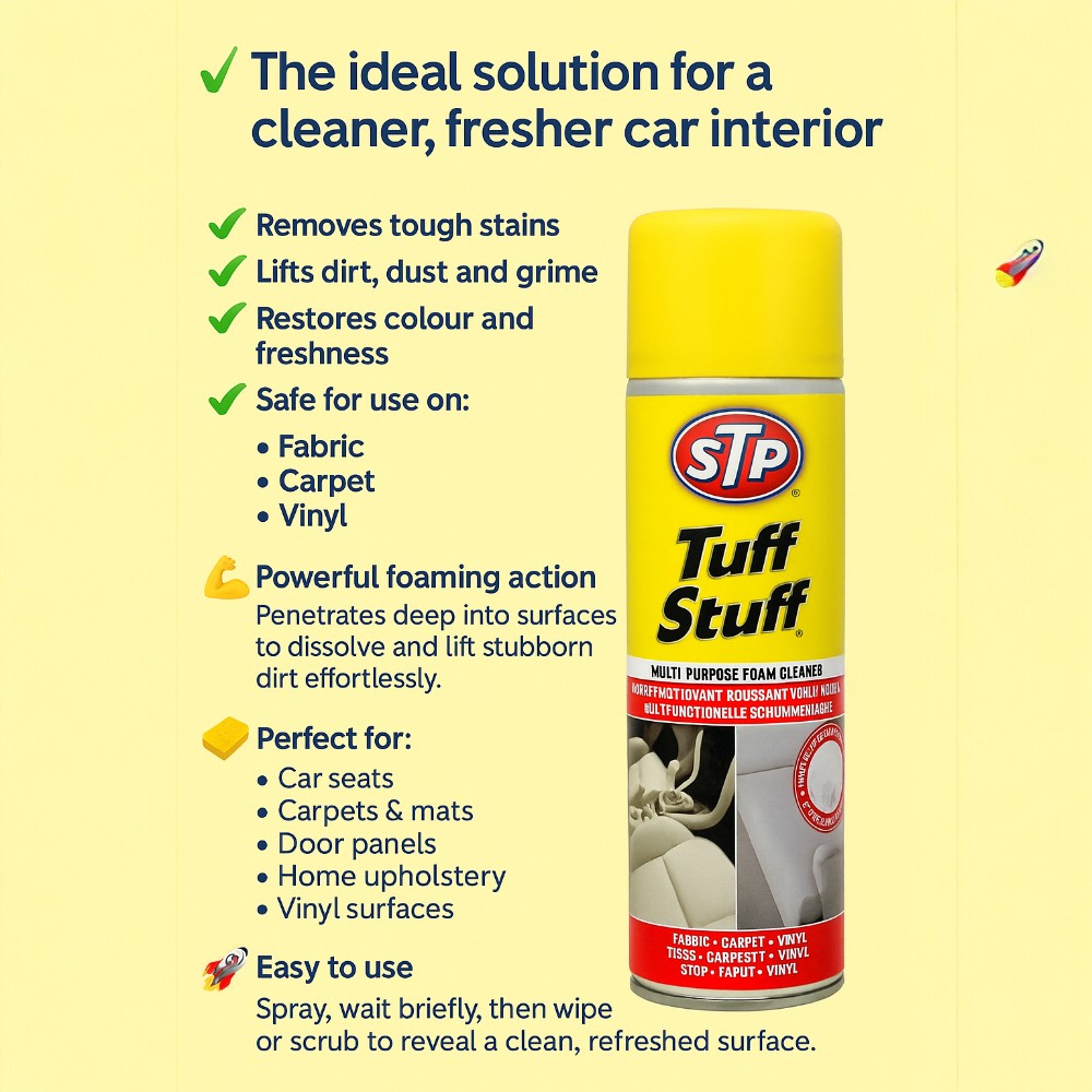 STP Tuff Stuff е идеален избор за бързо, лесно и ефективно почистване – както за автомобилния интериор, така и за дома.