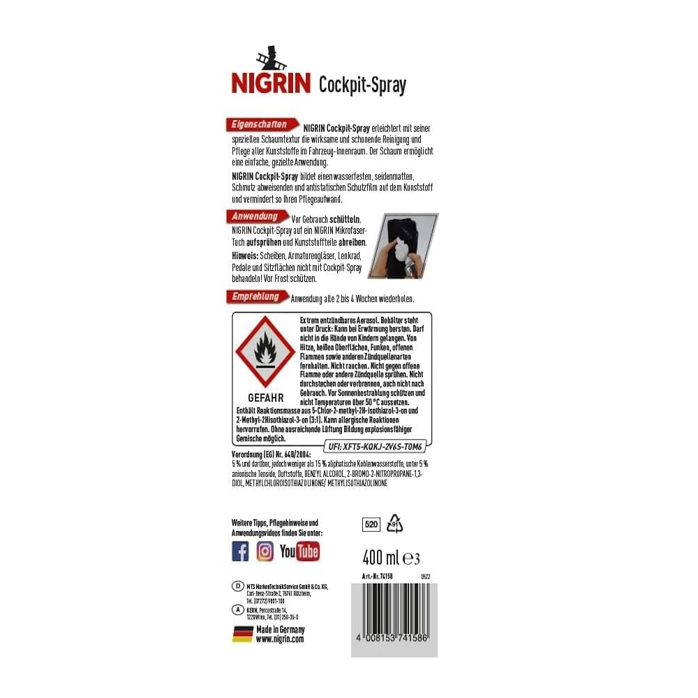 Начин на употреба: Напръскайте повърхността и полирайте с чиста кърпа. Не срещу стъкла.