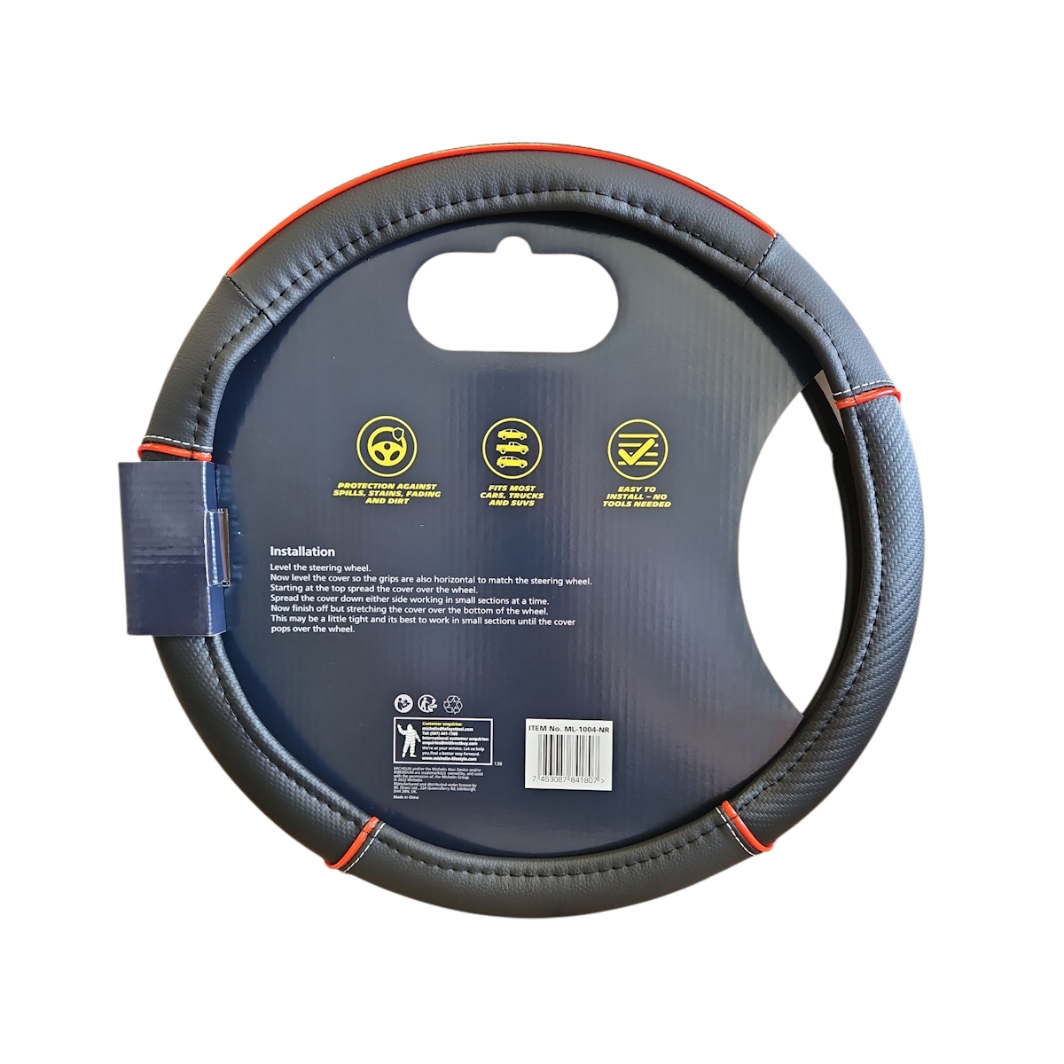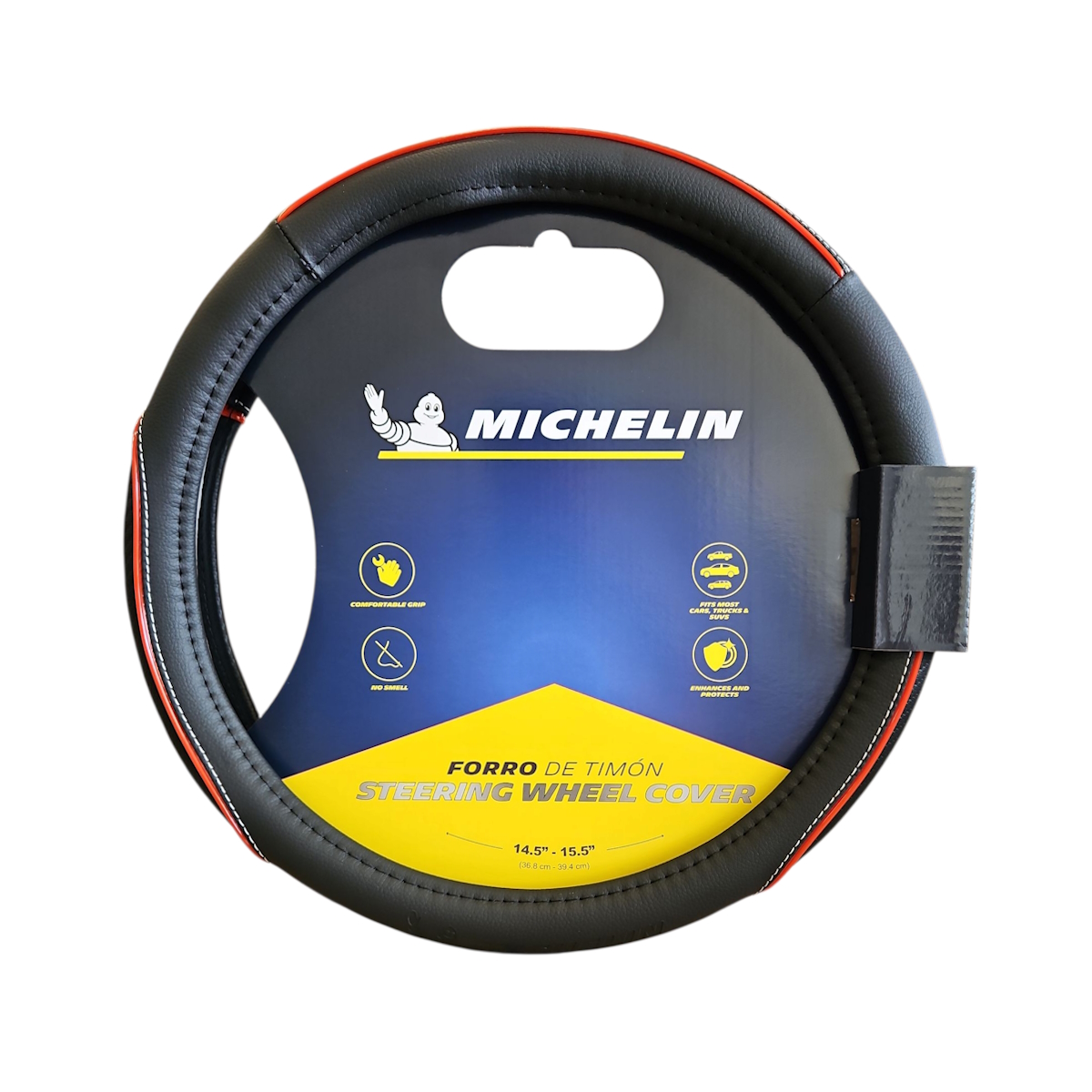 MICHELIN Калъф за волан 36,8-39,4 см. – черен с червен шев – ML-1004-NR