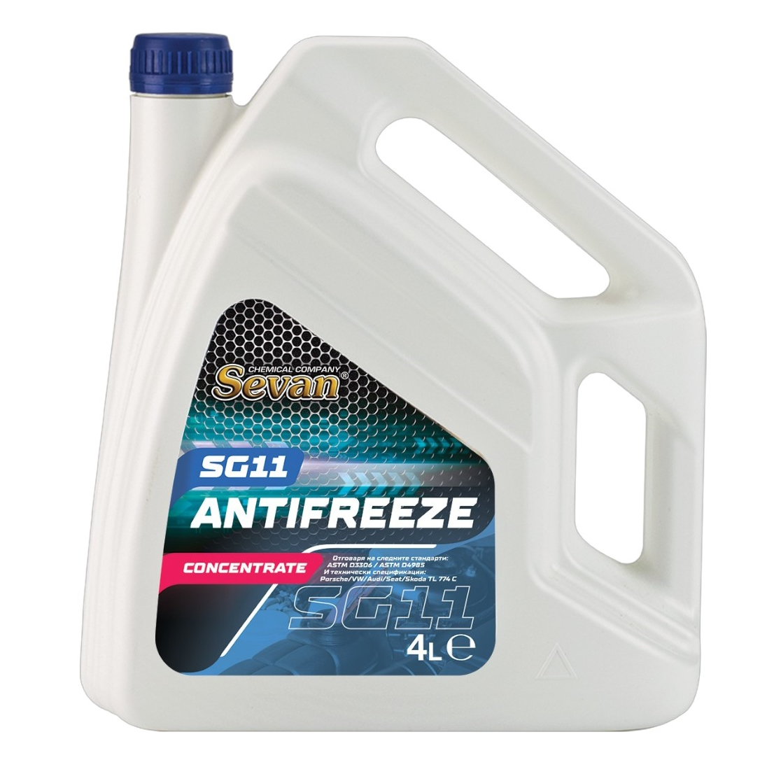 SEVAN® ANTIFREEZE SG11 се използва целогодишно за защита срещу замръзване, прегряване и корозия на двигатели на автомобили.