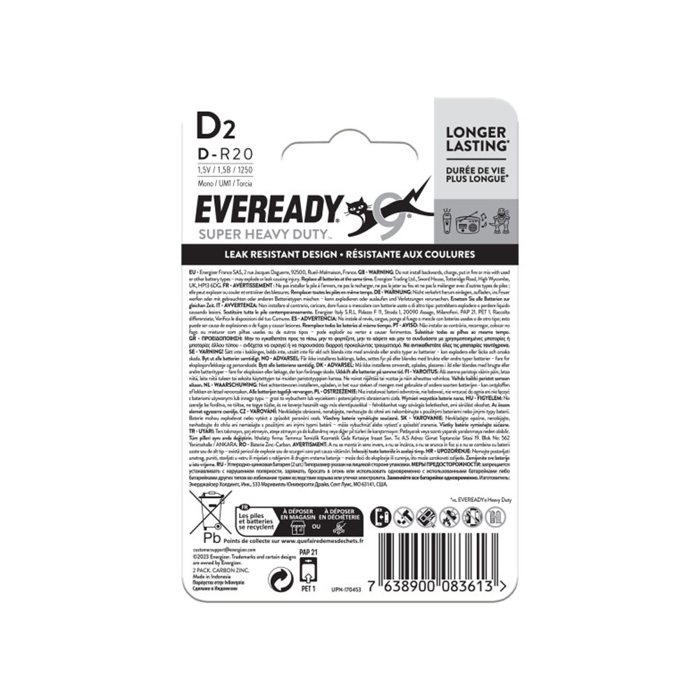 Батерии Eveready SHD цинкови D 2 бр.