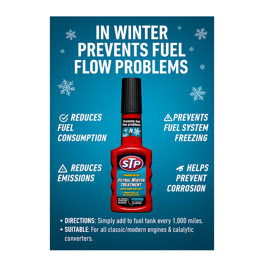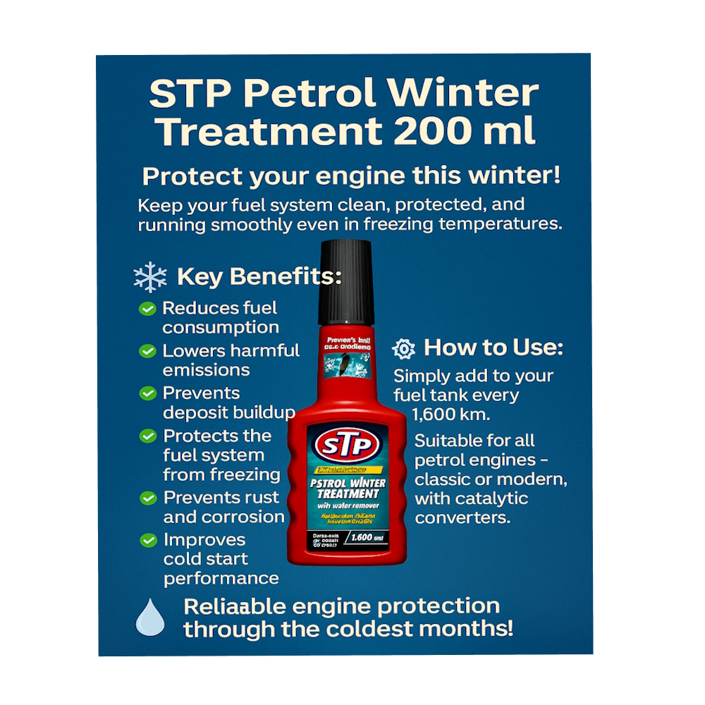 Подгответе автомобила си за зимата с STP® Petrol Winter Treatment – специално разработена добавка, която предпазва горивната система от замръзване, ръжда и натрупване на отлагания.
