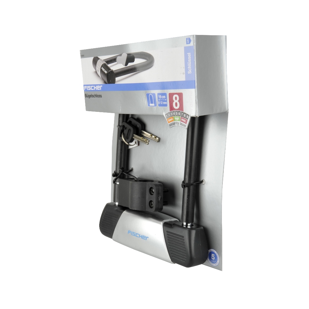 Заключващото устройство Fischer е изработено от закалена стомана и осигурява високо ниво на защита срещу кражба. С компактни размери 19×11 см и здрава конструкция с диаметър 12 мм, то е удобно за носене и лесно за употреба, без компромис със сигурността.
